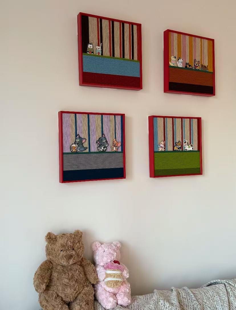 I originally saw this shop's pet series woven art on social media and knew I had to get something for my daughter's room so I messaged Liam to ask about customizing the colors. He was honestly so easy to talk to and really validated my ideas which made the whole process great. We ended up adding her favorite cartoon characters to the design and she absolutely loves them! It feels so unique and personal so thank you Liam for being so patient and creating something so beautiful for us!